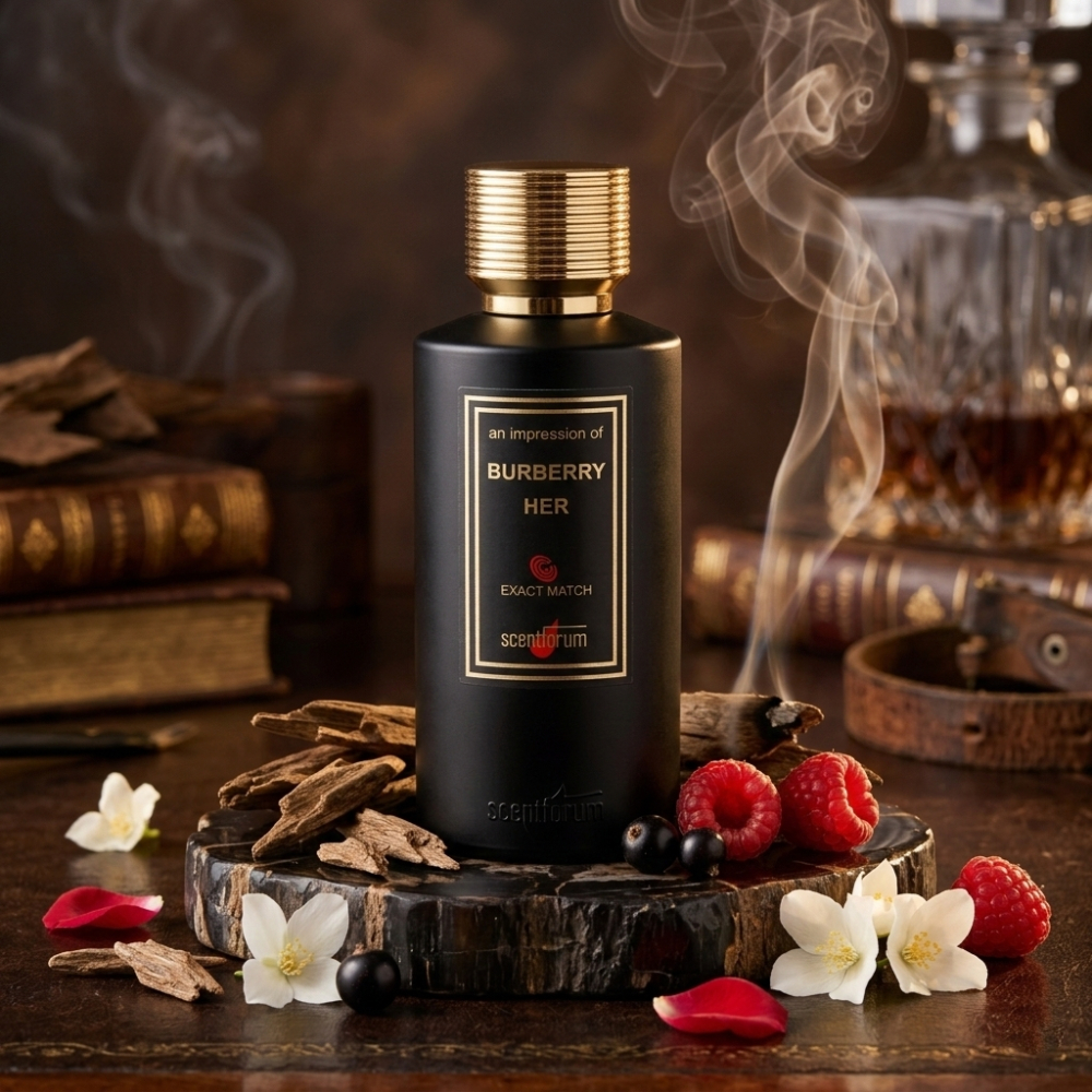 Burberry Her is designed to capture the youthful spirit of the city of London, the creative and eclectic metropolis; a spirit that is lively, adventurous and brave. It is made for those women who feel Londoners at heart. The composition is signed by Francis Kurkdjian as his interpretation of a floral-fruity theme with gourmand undertones. Crushed berry fruit from the top is combined with middle notes of violet and jasmine, based on woods and amber.